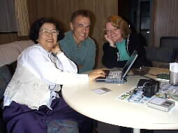 As the night goes on, they kindly offere to take us back to the Caravan Park. Since we thought he cabin might look unusual to them, we "invited" them in turn this time at the small cabin. I quickly copied pictures just taken in their home into a floppy disk and presented it to them.