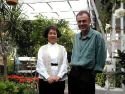A wonderful family of three, Mr. Rodney Parr born in London, Mrs. Cecills Parr born in Paris, and their son Mr. Anton Parr who went out just after the greeting. The couple carefully selects flowers not to interrupt blooming in the garden, they said. The most beautiful flower of the season is this "Queen Adelaide", Mrs. Cecills explained in smile.