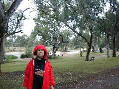 | TV weather forecast said a big storm, for the first time in ten years, are raging down to the Central Australia. We have stayed here five days and we couldn't set our rain coats aside. We have never seen a blue sky. We have been expecting to climb Ayers Rock. It could be a mistake that we intended to climb it, the sanctuary of aboriginal people. | |