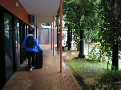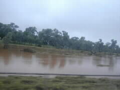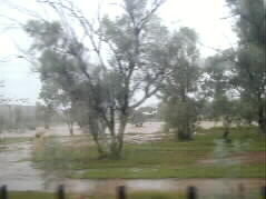 | Stuart highway to the airport is partially flooded like this. Cars run with high water splashes. If the rain continued more, we couldn't have reached even the airport. | ![]() |