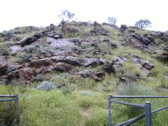 April 22: We at last decided to evacuate this wet town. As we couldn't go out for a walk because of the rain, we went out when the rain stopped for a while. This is Billy Goat Hill. As the sigh reads this is a sanctuary of aboriginal people, we gave up to enter. |