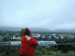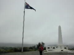 | This is Anzac Hill, on the north end of the downtown. A national flag flutters heavily in the rain on the top of the Hill. | ![]() |