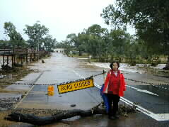 A road across the Todd River is closed like this. The flooding comes over the promenades on the riverbank. I could see a rare face of the "Dry River."