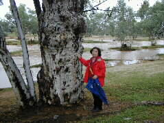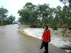![]() | 19日、The second day in Alice Springs opened in the rain. We went to Todd River to see the flood. The river boasts of its unusual "boat race": People enjoy the race every October by "rowing" boats (Contestants carry a boat-shaped frame holding by hands and run on the dry river bed barefooted, rising red dust.) Today, the would-be contestants can enjoy actual water, however. |