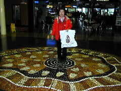 ![]() | At the airport, I found myself with another shopping bag in hand. The pattern on the floor is of beautiful aboriginal design. |