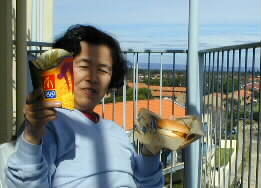 ![]() | 今日はイースターサンデーでお店は殆どがお休み、マクドナルドが開いていたのでお昼はホテルの部屋のテラスでハンバーガーとフライドポテトを食べました。ポテトのケースにはオリンピックを成功させよう!と書いてあります。 |