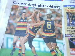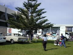 当日券売り場も長蛇の列です。何もすることがないので見ようかと話したりしましたがこの行列を見て止めました。翌朝の新聞を見てその賑わいの訳がわかりました。 試合は地元のアデレードとポートアデレードの試合でした。 チームカラーのマフラーやポロシャツを身につけ、人形や旗を持って応援に来ています。そして帰りは車の窓からそのマフラーをたなびかせて走ります。面白いなと思いました。 |