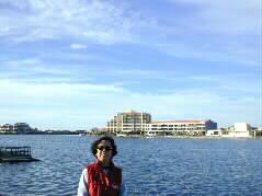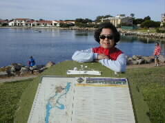 ![]() | レイクの北の端にきました。昔は海に続く砂丘だったそうですが、そこを掘って入り江のようにしています。そして湖と呼んでいますが海水です。 |
