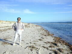 ホテルに戻って来たら足が棒になっていました。どのくらい歩いたのでしょうか。 しかし、シャワーを浴びてテラスでビールを飲みながら、海に落ちる大きな太陽を見ているとそんな疲れも飛んでしまいます。赤く雲を染めて太陽が沈みやがてだんだん暗くなり、星が一つまた一つと光るのをいつまでも眺めていると、ここはオーストラリアなんだ、と不思議な気持ちになりました。 |