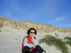 ![]() ホテルの部屋からは、レイクの対岸に丘が見え、その向こうに太平洋が見えます。一度その丘を超えてみたいと思っていましたので、住宅や道路を超えて丘に上がりました。砂丘を保存するための立て札と柵がありました。珍しい草の生えた砂丘、そして白い砂浜、青い海が広がっていました。何だかとても感動をしました。 |