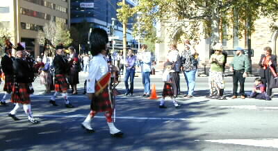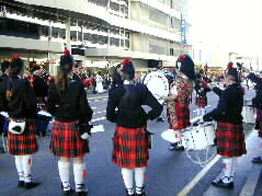 ![]() こちらのバグパイプの楽隊のリーダーはかわいい男の子でした。一生懸命に指揮棒を振って歩いています。 |