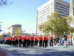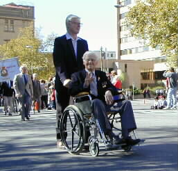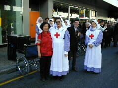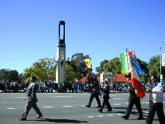 | 若い人、お年寄り、いろいろな人が行進をしています。もう第一次大戦時の人は殆どいませんから、その関係の方が受け継いで行進に参加しています。 | ![]() |