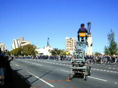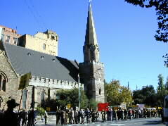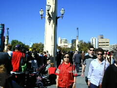 ![]() アデレード市民の憩いの場所、ノーステラスと呼ばれるトレンズ川にかかる橋の上です。ここはたくさんの人がイスを持って来たり毛布をひいたりしてパレードを見ては手を振り、拍手をしています。 |
