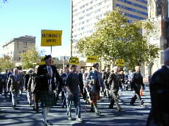 | プラタナスの並木が黄葉して美しい道を行進は続きます。 | ![]() |