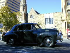 ![]() 珍しいふるい車に乗ったり、車椅子の方もいたり、また、老人施設や教会などのバスで参加している人、本当にいろいろです。 |