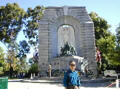 ![]() | 市の中心部にある、兵士の記念碑です。今日は若い兵隊さんが銃を持って守っています。花輪がたくさん供えられています。この周りにはいろいろな戦死者の記念碑が取り巻いています。 |