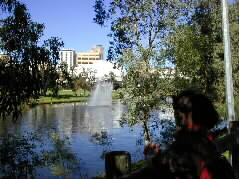 ![]() パレードは流れ解散のようでした。トレンズ川の公園です。白い大きな屋根のフェステイバルセンターがあったり、きれいな噴水が出ていたりアデレードの代表的な景色です。 |