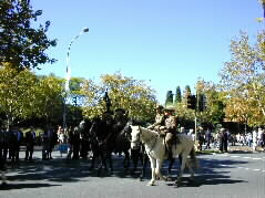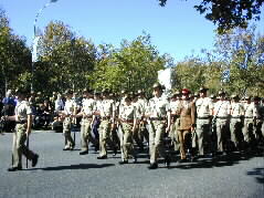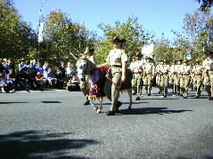 | 第二次大戦、朝鮮戦争、ベトナム戦、そして最近の国連軍参加などの軍隊が行進をした後は、現役の若い兵士の行進が続きます。何故かロバが先頭のグループもありました。 | |