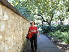 | ノースからシテイへ戻ってきました。博物館へ続く公園のような道です。大きな木が木陰を作り、美しい花が咲いています。 | ![]() |