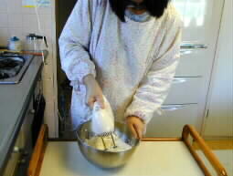 Miss Lillian has been homestaying in my ouse since 26th last month. She will leave tomorrow at last. Today, we will bak cookies for souvenir to Lillian's friends. The cookie is "Icebox cookkie", easy to bake.