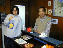 She will go back to Tokyo by JR train tomorrow. We exchanged a message card on which a picture we three took on the first day was attached. We have talked much until late night.