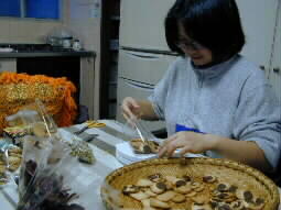 She neatly prepare cookie bags for her friends in her dormitory and other friends.