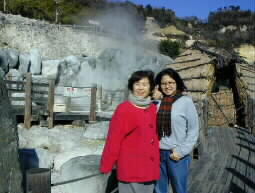 今日はリリアンさんと一緒に別府観光に出かけました。まず、明礬温泉に行って湯の花を作っている所をみました。その後、十文字原から立命館アジア太平洋大学を見に行ったり、別府温泉の”はしご”をして帰りました。 夜はインターネットの友人と団子汁を楽しみました。 |