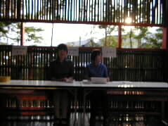 | 入り口で受付をしているのは、由布院観光総合事務所の角谷明美さんと堀裕子さんです。ご苦労様。 |  |