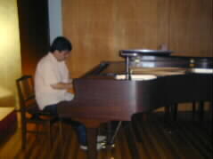 | 山水館の菊池さんが、ピアノ演奏をして下さいました。映画音楽メドレーです。懐かしい映画主題歌が流れる中でおいしいお料理、楽しいおしゃべり、本当に素適な時間です。 |  |