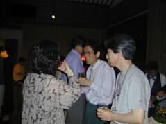 |  | あちこちで楽しそうなお話の輪が出来ています。こちらは、右から加藤昌邦さん、中谷健太郎さん、そしてことこと屋の美佐子さん。 |