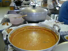 | 7月29日 ボランテイアスタッフは午前11時に会場の公民館に集まりました。今日の昼食は後藤千香子さんが腕を振るって下さったカツカレーです。大好評でした。サラダも一杯あってうれしい昼食です。 | |