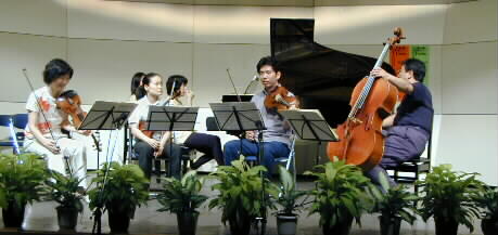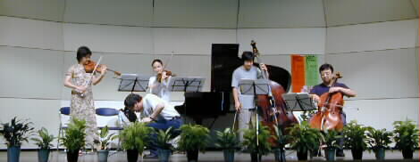 |  ホールではサマーアンサンブルのリハーサルが行われています。演奏家の皆さんをどうぞ! | |