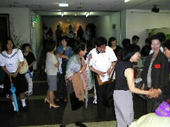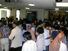 |  | 演奏の終了したロビーでは、あちこちで人の輪が出来て和やかな雰囲気が一杯です。 |