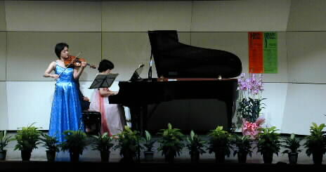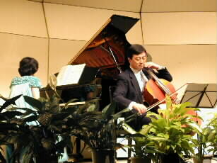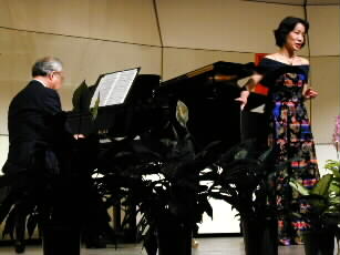 |  | フランス・スペイン歌曲の演奏、メゾソプラノは野々下由香里さん、伴奏は河野美砂子さん。(撮影:実行委員の山口さん) |