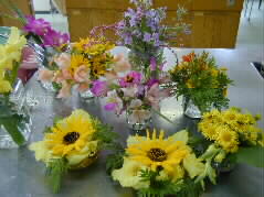 |    今日は演奏会の合間にティーパーティーをしますのでテーブルを飾るお花を用意しました。 パーティーには地元のお店の協賛で素適なお菓子がたくさん並びます。 | |