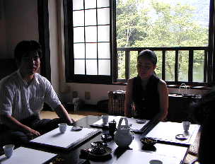 |    ティーパーティーの時間になりました。 湯布院のおいしいお菓子、コーヒー、梅蜜ジュース、紫蘇ジュース、そしておしゃべりを楽しまれています。 | |