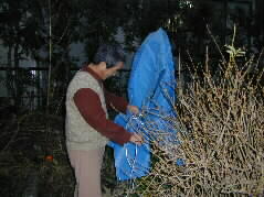 |  | 1月13日、テレビの天気予報が「今夜から九州地方にも大寒波が襲来します」と繰り返しています。 ツタンカーメン王陵のえんどう豆が寒いとかわいそうと、夫がシートカーバーをかけました。 |
