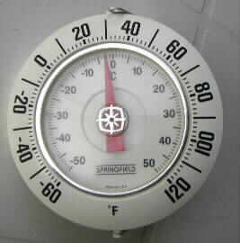 | 昨夜からテラスのテーブルに出しておいた温度計がー2度をさしています。見ただけで体がブルッとします。 |  |