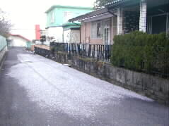| 我が家の北側の道路も、その前の幼稚園のサブグランドも白くなっています。 | |