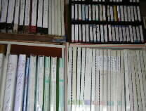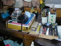 | 父の部屋に入ってみました。本棚には父の趣味だった写真のアルバムと謡曲のテープがきちんと納められていました。また父がいつも書き物をしていた机の上にはたくさんのペンやカメラが置かれていて、いまにも父の声が聞こえてきそうでした。 | |