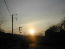 | 神戸の町の中を車で走っている時に、太陽が昇りました。 |  |