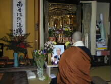 |  | お坊さんにお経を上げて頂き、私達もお参りをしました。 |