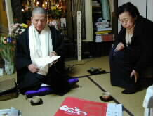 | 午後にお坊さんが来られてお経を上げて下さいました。父を偲び、そして「感謝する心」というお説教をして下さいました。辛いこと、うれしいこと、何でも感謝の気持ちで受けることが出来るようになりたいというお話でした。辛いことでも感謝して、というのはなかなか難しいことですが、そうありたいと思いました。 | |