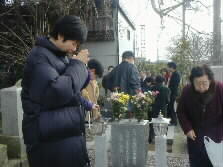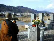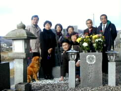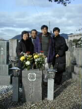 |  | お墓の前で私たちも記念写真を写しました。 右から恭代、岳人、建一、美惠子です。 |