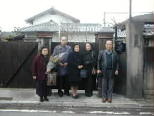 |  | 今日は私達の従姉妹夫婦も来て下さって皆でまた林田にお墓参りです。父の生まれた家の前で母と従姉妹夫婦たちが記念写真をとりました。 家は屋敷の半分は中学のグランドになり、昔の面影はありませんが、大きな楠だけは枝を広げて立っていました。 |