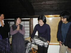 |  | 金沢から湯布院へ2年間の予定で研修に来ている角谷さんです。予定の任期があと2ヶ月となったそうです。 こうして次々と出席者全員がお話をしました。 |