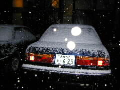 | 楽しい時間もあっという間に終りました。外へ出てみると我が家の車は、真っ白に雪で覆われていました。 | |