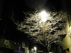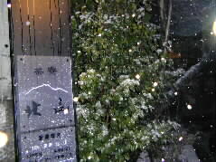| 花の木通りの木も、枝に雪が積もり、とてもきれいです。まだまだ雪は降っています。 今夜は、音楽祭運営委員の佐藤さんがお勤めのホテルに泊まることにした私達です。 |  |