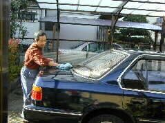 |  | 今日は素晴らしい青空、朝、埃と黄砂で汚れた車をきれいにして、 |