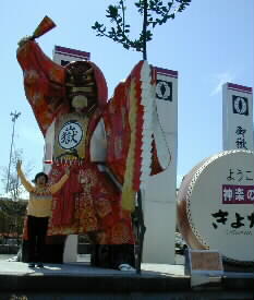 |  | 日本神話の天孫降臨の時に道案内をしたのがこの猿田彦尊ということで今では「道祖神」として親しまれているので、この地を訪れる人の道案内と道中の安全の祈願をこめて建立されたモニュメントだそうです。 とっても大きくてびっくり、そして太鼓も叩くとちゃんとドンドンといい音がするんですよ。 |